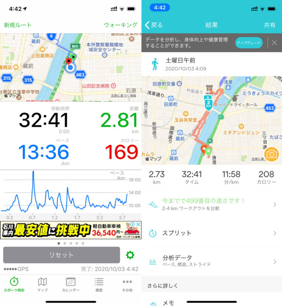 ウォーキングを短縮バージョンにした為です。