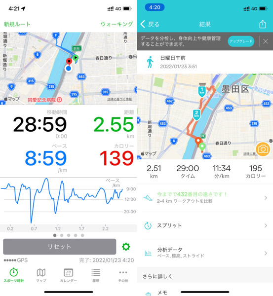 朝の時間の関係でウォーキングを短縮バージョンした為です。