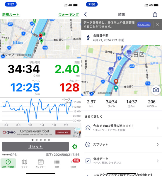 体調管理と家族との朝の時間の関係でウォーキングを短縮バージョンにした為です。