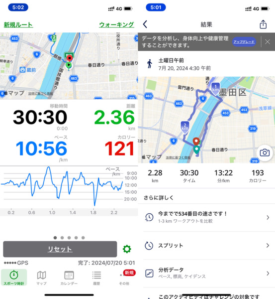 体調管理と家族との朝の時間の関係でウォーキングを短縮バージョンにした為です。