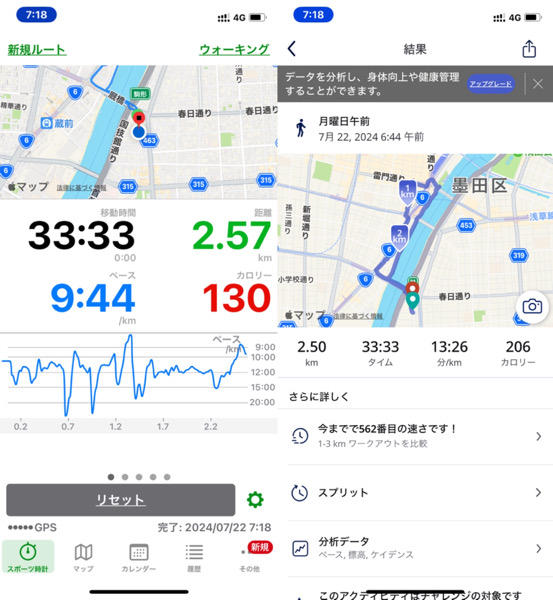 体調管理と家族との朝の時間の関係でウォーキングを短縮バージョンにした為です。