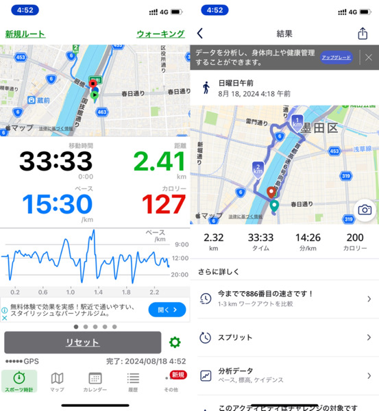 体調管理と家族との朝の時間の関係でウォーキングを短縮バージョンにした為です。