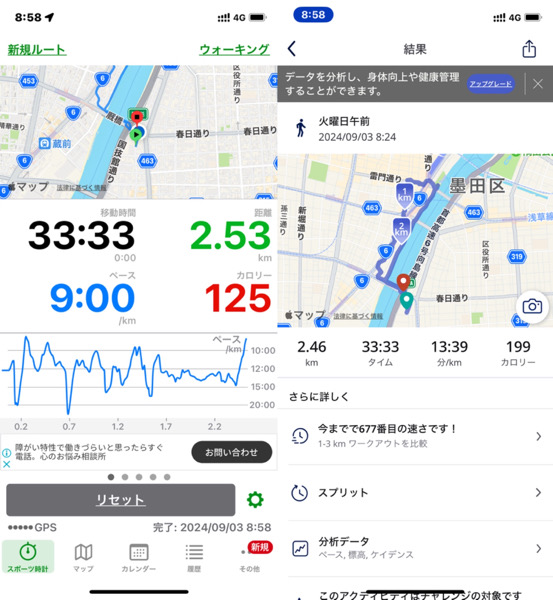 体調管理と家族との朝の時間の関係でウォーキングを短縮バージョンにした為です。