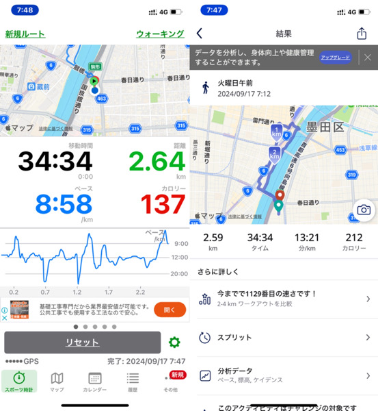 体調管理と家族との朝の時間の関係でウォーキングを短縮バージョンにした為です。