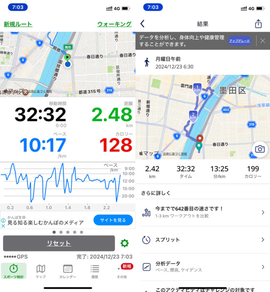 体調管理と家族との朝の時間の関係でウォーキングを短縮バージョンにした為です。