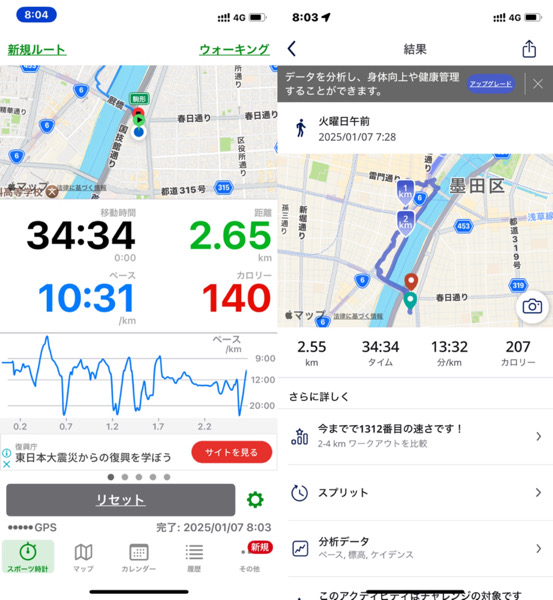体調管理と家族との朝の時間の関係でウォーキングを短縮バージョンにした為です。