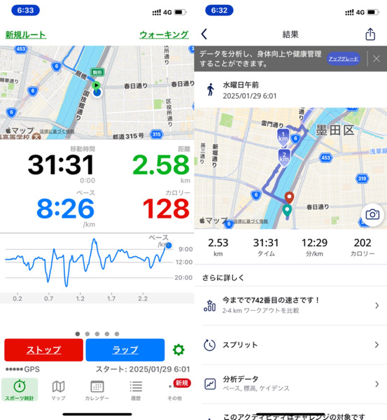 体調管理と家族との朝の関係でウォーキングを短縮バージョンした為です。