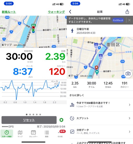 体調管理と家族との朝の時間の関係でウォーキングを短縮バージョンにした為です。