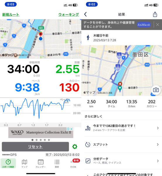 体調管理と家族との朝の時間の関係でウォーキングを短縮バージョンにした為です。