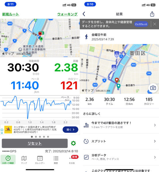 体調管理と家族との朝の時間の関係でウォーキングを短縮バージョンにした為です。
