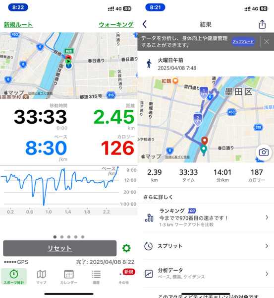 体調管理と家族との朝の時間の関係でウォーキングを短縮バージョンにした為です。