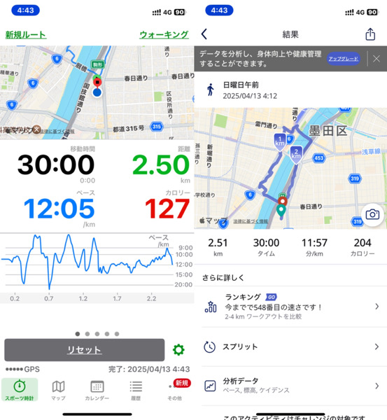 体調管理と家族との朝の時間の関係でウォーキングを短縮バージョンにした為です。