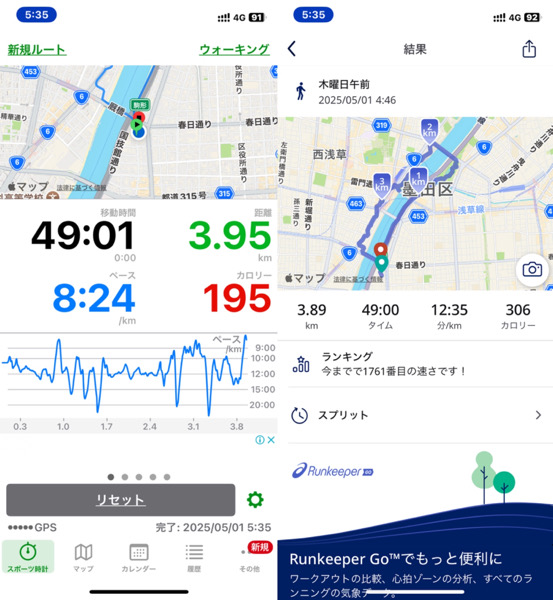 体調管理と家族との朝の時間の関係でウォーキングを短縮バージョンにした為です。