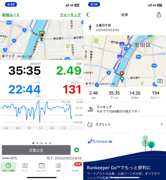 体調管理と家族との朝の時間の関係でウォーキングを短縮バージョンにした為です。