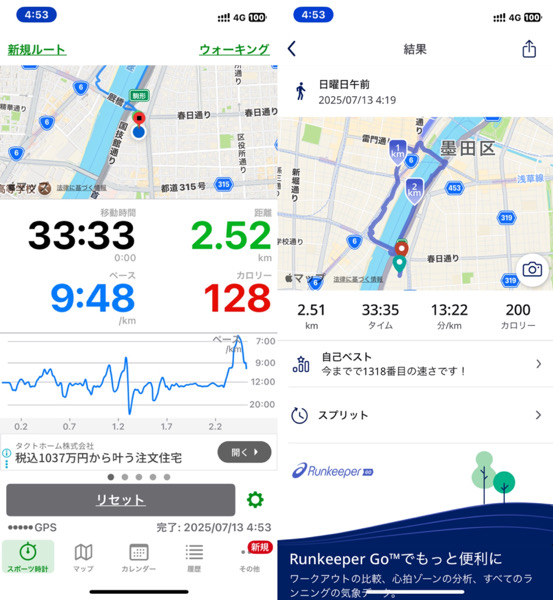 体調管理と家族との朝の時間の関係でウォーキングを短縮バージョンにした為です。