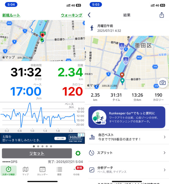 体調管理と家族との朝の時間の関係でウォーキングを短縮バージョンにした為です。