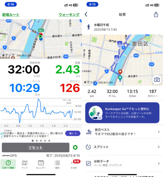 体調管理と家族との朝の時間の関係でウォーキングを短縮バージョンにした為です。