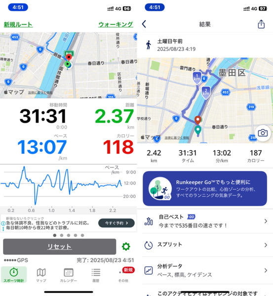 体調管理と家族との朝の時間の関係でウォーキングを短縮バージョンにした為です。