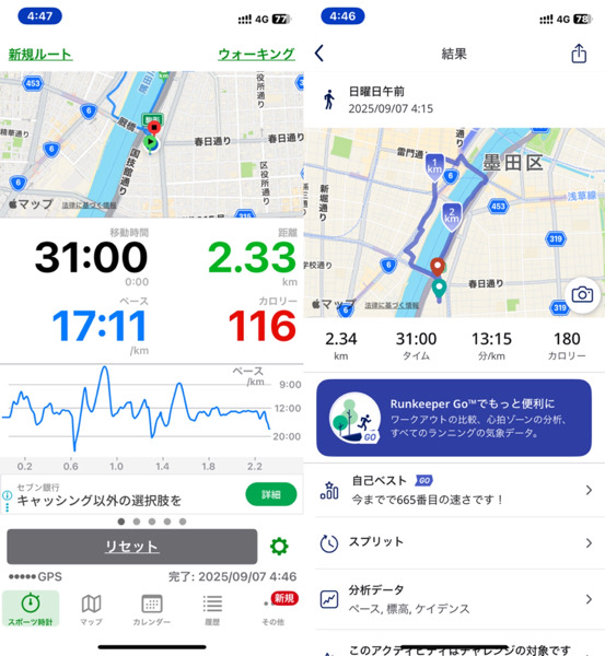 体調管理と家族との朝の時間の関係でウォーキングを短縮バージョンにした為です。