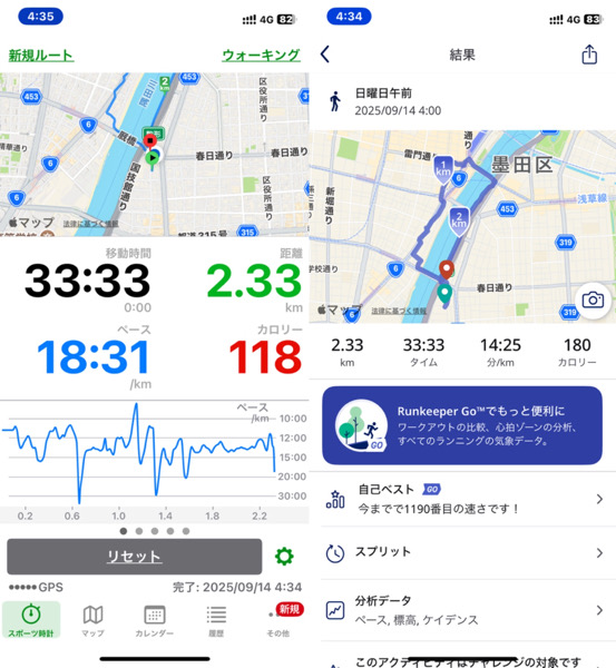 体調管理と家族との朝の時間の関係でウォーキングを短縮バージョンにした為です。