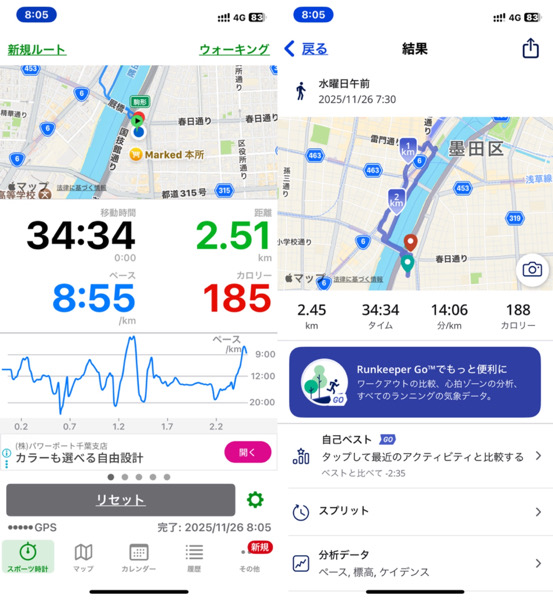 体調管理でウォーキングを短縮バージョンにした為です。