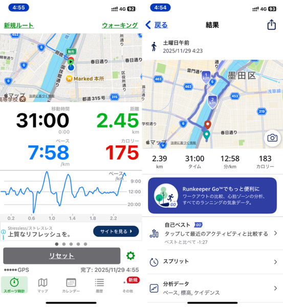 体調管理と家族との朝の時間の関係でウォーキングを短縮バージョンにした為です。