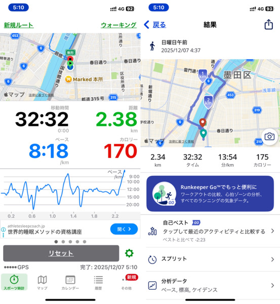 体調管理と家族との朝の時間の関係でウォーキングを短縮バージョンにした為です。