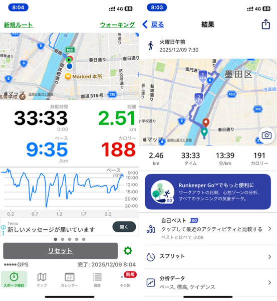 体調管理と家族との朝の時間の関係でウォーキングを短縮バージョンにした為です。