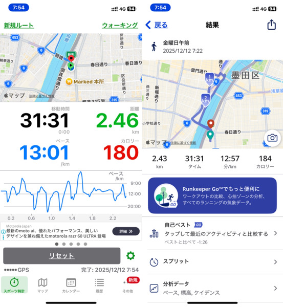 体調管理と家族との朝の時間の関係でウォーキングを短縮バージョンにした為です。