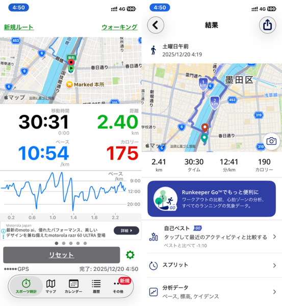 体調管理と家族との朝の時間の関係でウォーキングを短縮バージョンにした為です。