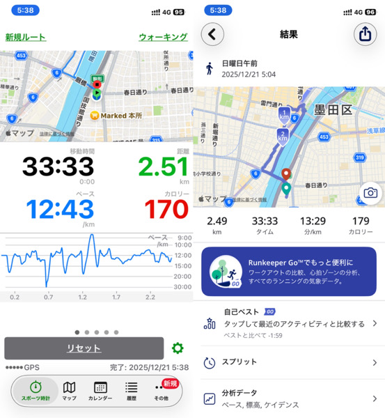 体調管理と家族との朝の時間の関係でウォーキングを短縮バージョンにした為です。