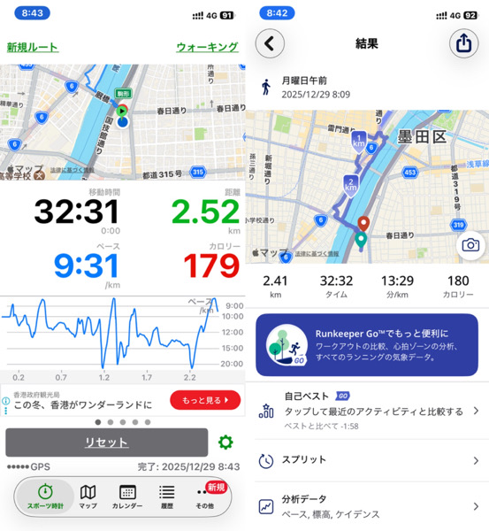 体調管理と家族との朝の時間の関係でウォーキングを短縮バージョンにした為です。