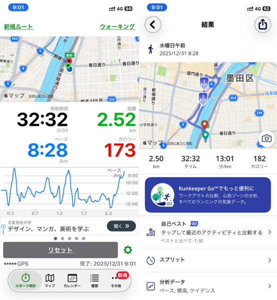 体調管理と家族との朝の時間の関係でウォーキングを短縮バージョンにした為です。