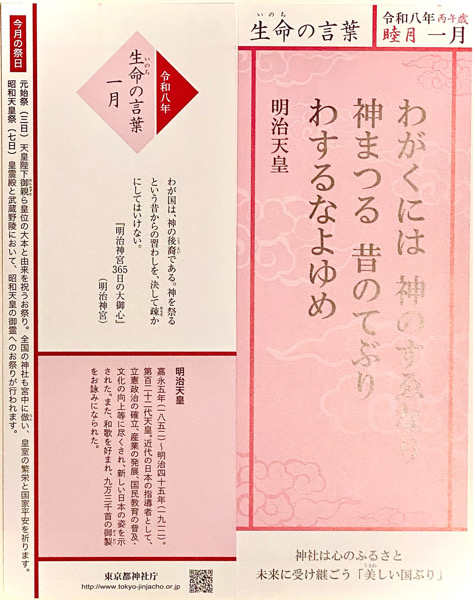 毎月はじめに東京都台東区の蔵前にある諏訪神社で生命(いのち)の言葉の用紙をいただいております。