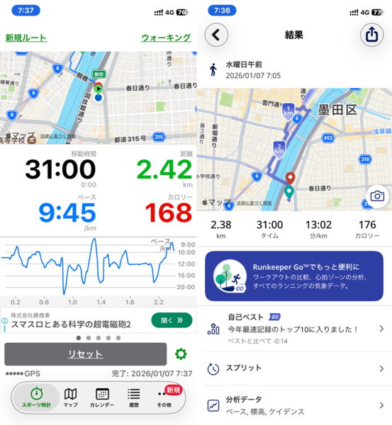 体調管理と家族との朝の時間の関係でウォーキングを短縮バージョンにした為です。