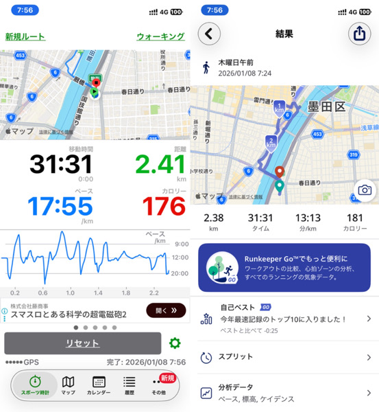 体調管理と家族との朝の時間の関係でウォーキングを短縮バージョンにした為です。