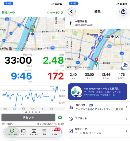 体調管理と家族との朝の時間の関係でウォーキングを短縮バージョンにした為です。