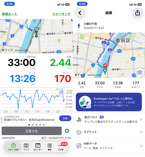 体調管理と家族との朝の時間の関係でウォーキングを短縮バージョンにした為です。