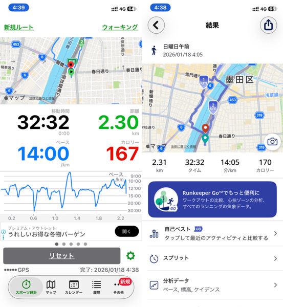 体調管理と家族との朝の時間の関係でウォーキングを短縮バージョンにした為です。