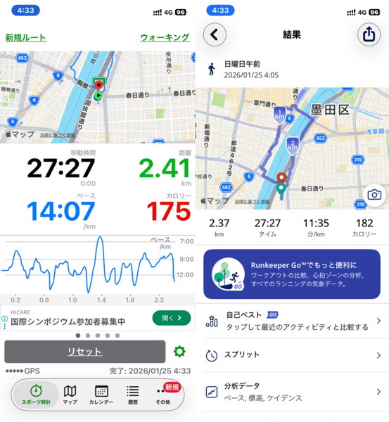 体調管理と家族との朝の時間の関係でウォーキングを短縮バージョンにした為です。