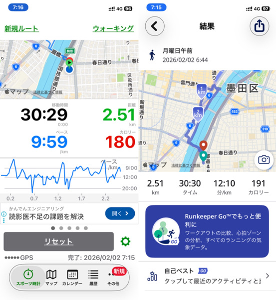 体調管理と家族との朝の時間の関係でウォーキングを短縮バージョンにした為です。