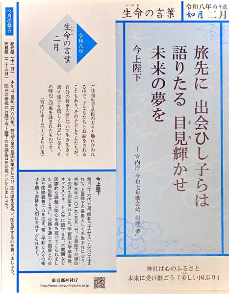 毎月はじめに東京都台東区の蔵前にある諏訪神社で生命(いのち)の言葉の用紙をいただいております。