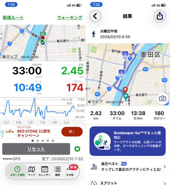 体調管理と家族との朝の時間の関係でウォーキングを短縮バージョンにした為です。