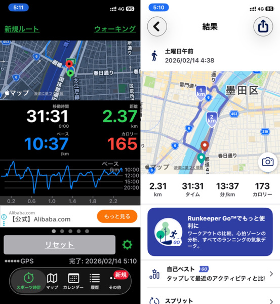 体調管理と家族との朝の時間の関係でウォーキングを短縮バージョンにした為です。