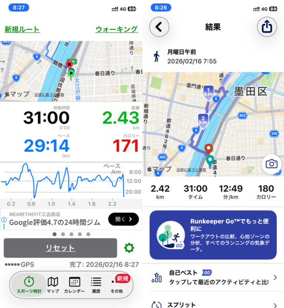 体調管理と家族との朝の時間の関係でウォーキングを短縮バージョンにした為です。