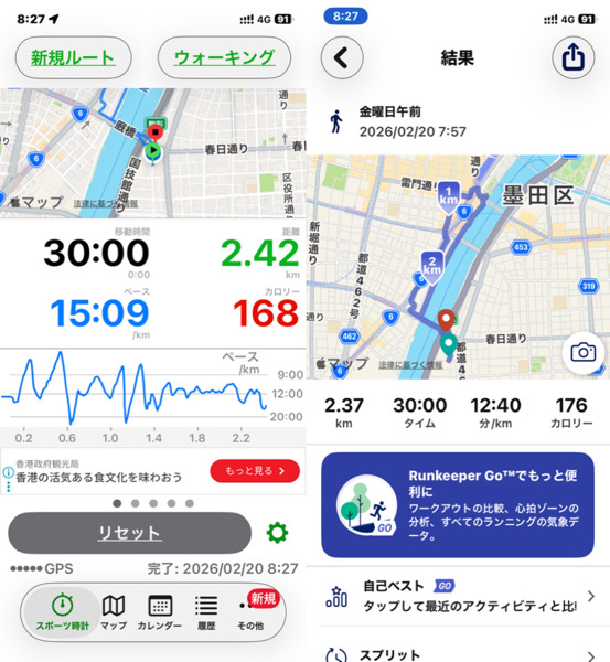 体調管理と家族との朝の時間の関係でウォーキングを短縮バージョンにした為です。
