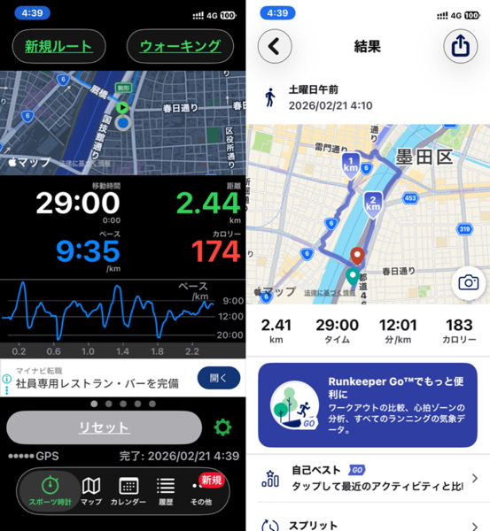 体調管理と家族との朝の時間の関係でウォーキングを短縮バージョンにした為です。