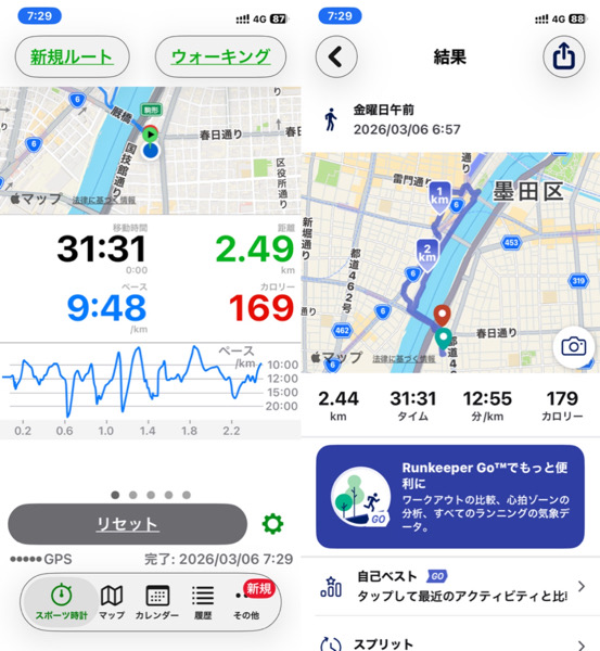 体調管理と家族との朝の時間の関係でウォーキングを短縮バージョンにした為です。