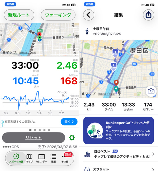 体調管理と家族との朝の時間の関係でウォーキングを短縮バージョンにした為です。