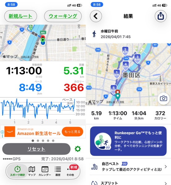今朝(20260401)は小雨の中を傘は差さずにキャップを被ってウォーキングをしました。